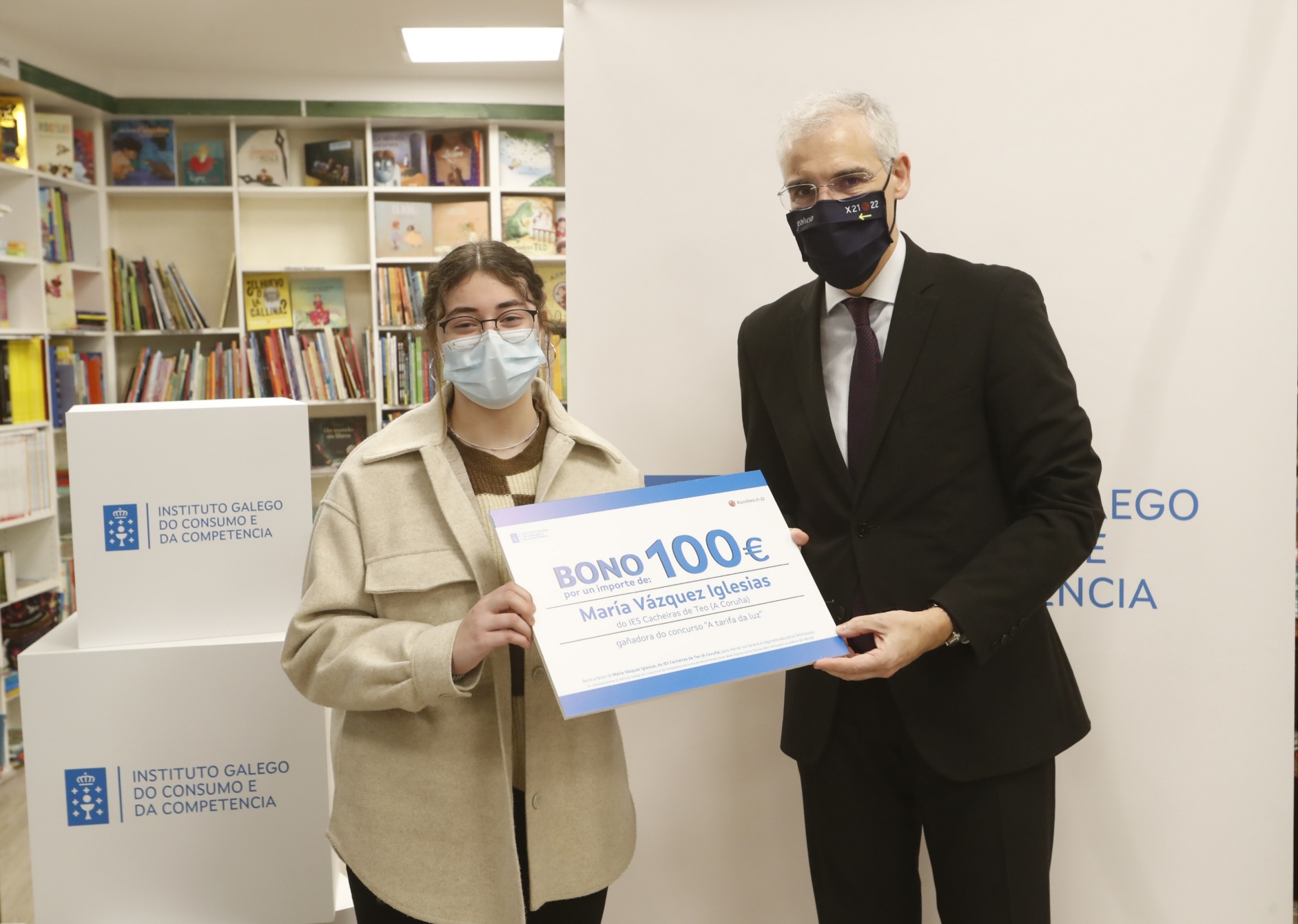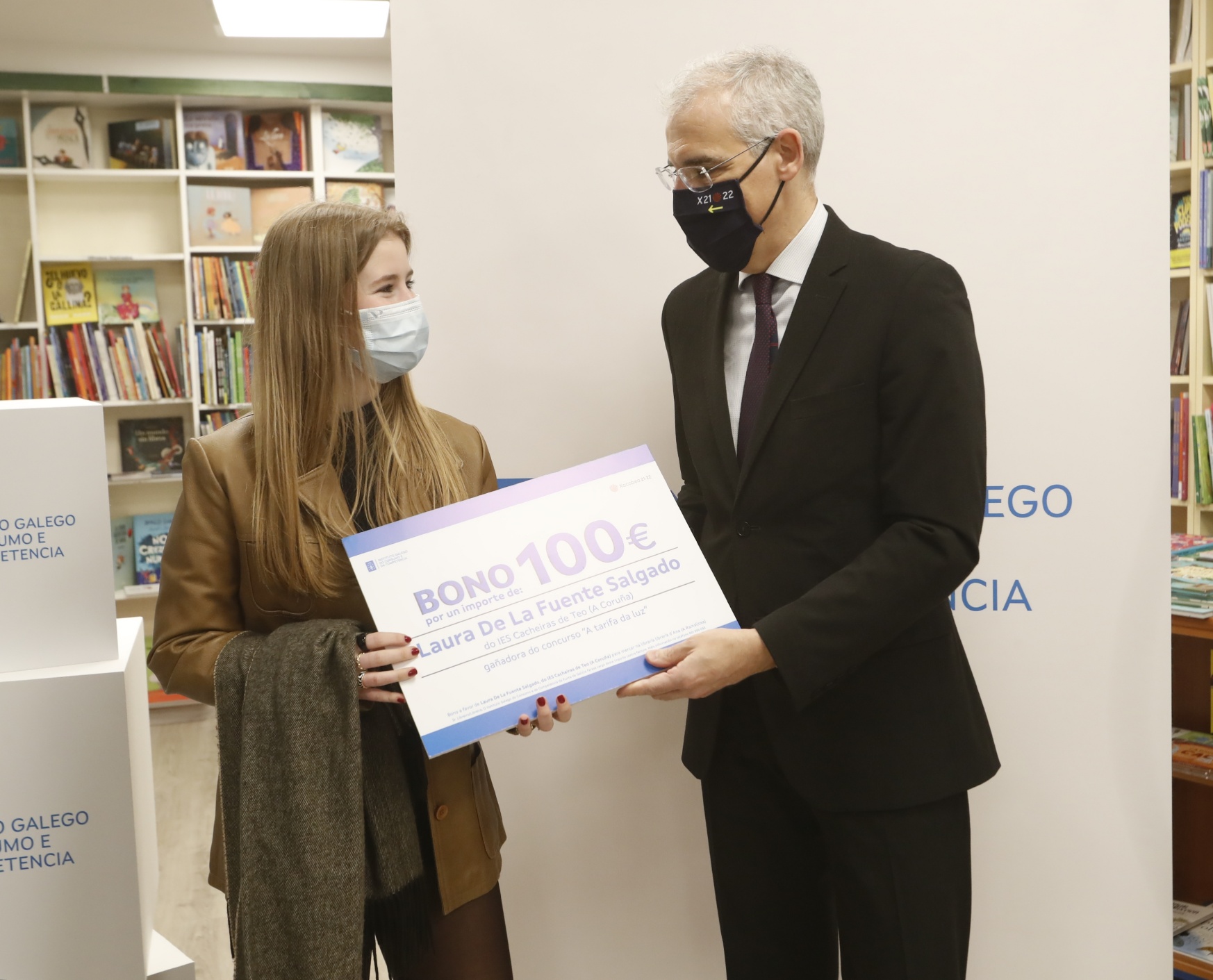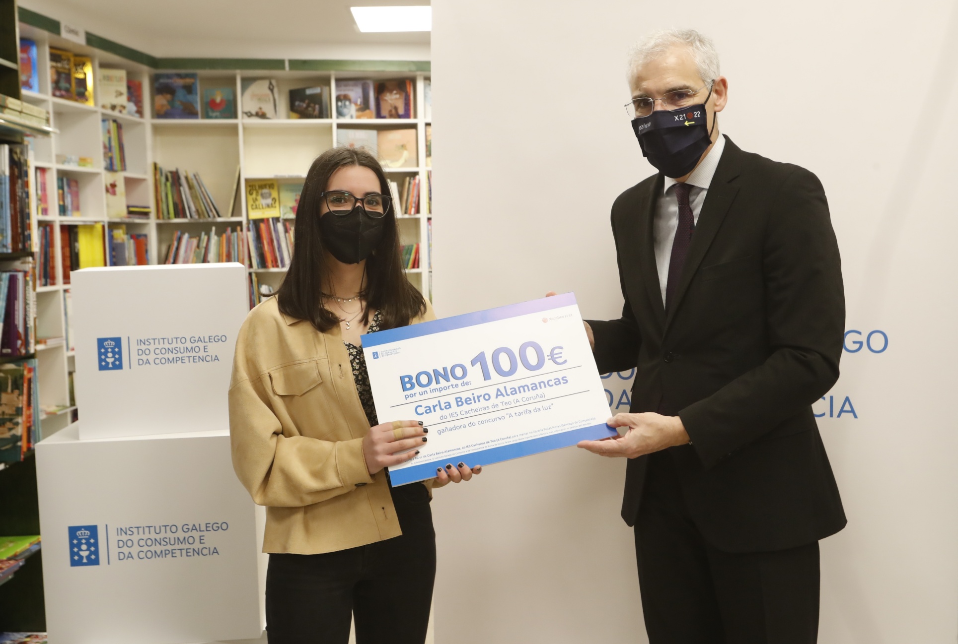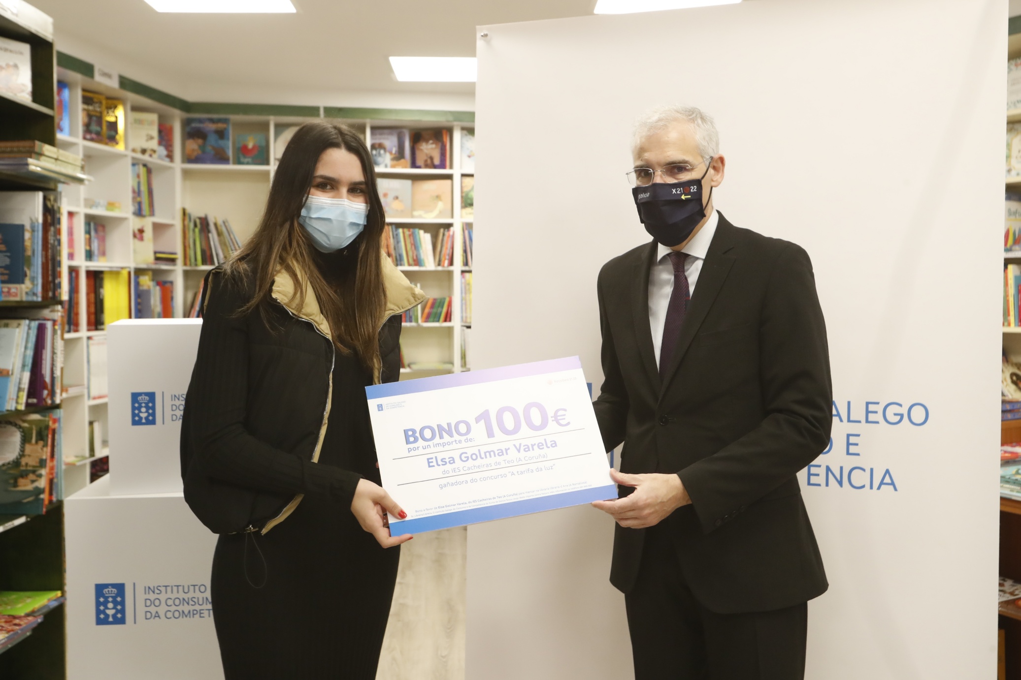 O responsable de Economía, Empresa e Innovación participou na librería Follas Novas de Santiago de Compostela na entrega dos galardóns a catro das alumnas gañadoras no certame sobre a factura da luz para escolares organizado polo Instituto Galego do Consumo e da Competencia (IGCC), no cal se premiou a 25 rapaces e rapazas de 4º da ESO de toda Galicia con vales de 100 euros para mercar na librería da súa elección.